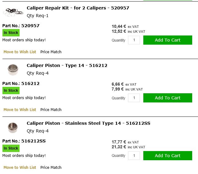 Suite au démontage de l'étrier je me suis rendu compte que l'un des vérin restait bloqué, l'autre vérin est bien venu mais le cache poussière s'est déchiré. Conclusion ou je change les étriers ou je les rénove mais je suis un peu perdu avec les références (Morgan de 66, étrier Girling type 14LH)