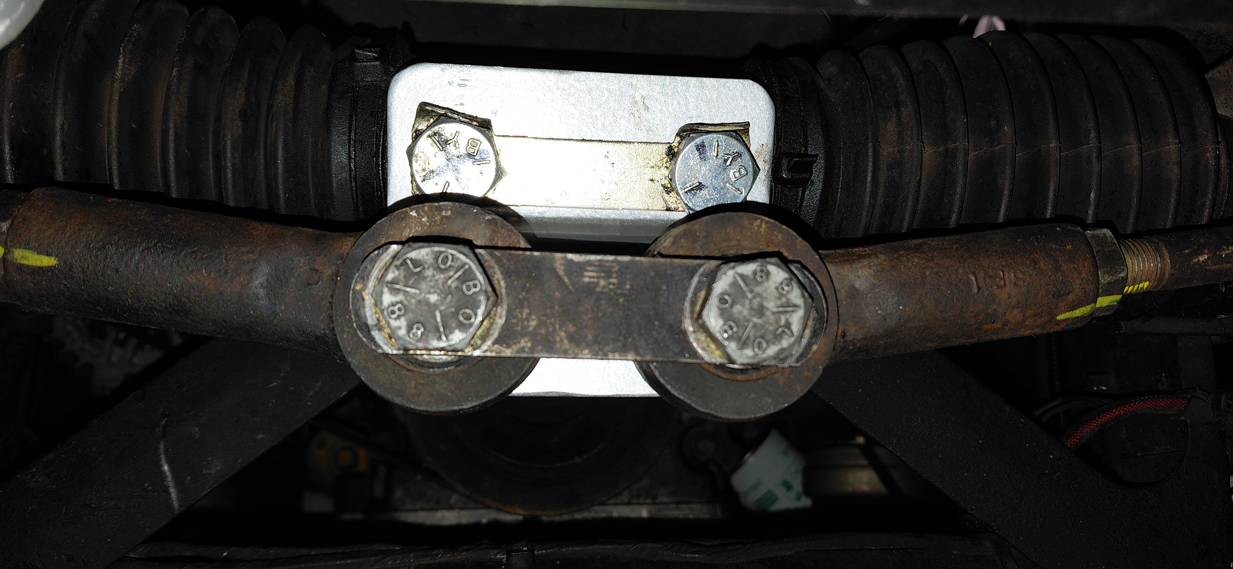 - remplacement de la platine de liaison crémaillère/biellettes de direction par une pièce renforcée