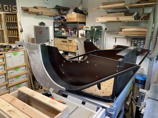 - decision prise également de ramener le vieux châssis (mon atelier bois est à 45min du reste de la morgan) pour m’aider dans l’alignement des sill board et être sur d’avoir une caisse bien droite avec tout ce que je refais.