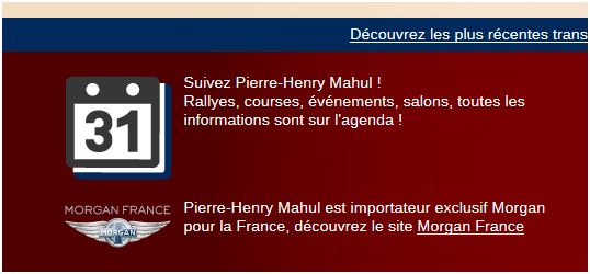 Rien n'apparait sur le site de Morgan France, ni sur celui de Marcassus qui fait parti des 2 concessionnaires mentionnés sur le site de la MMC.