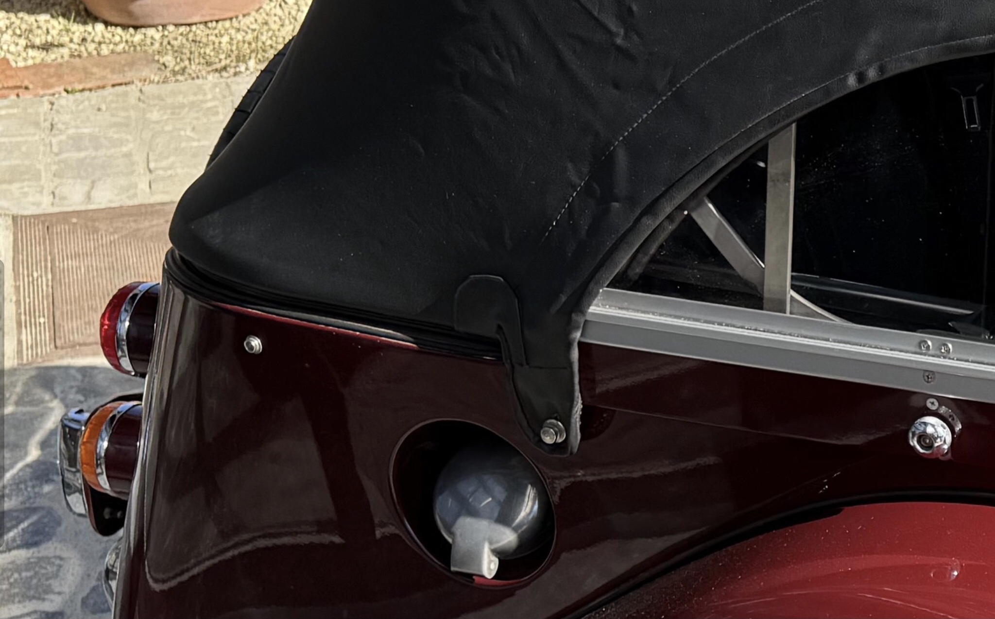 La capote a été réparée par un membre du Forum sellier dans ma région! Merci Franck! Le démontage et remontage sur un tourer se fait aussi facilement. 1er trajet avec toute la famille, capoté ce week-end, durant 2h de route. On a été agréablement surpris du relatif confort sonore (nos référentiels étant la 2cv et la Caterham). Ma fille de 7 ans s’est endormie au bout de 10min. Seul bémol les side avant et arrière qui s’entrechoquent.