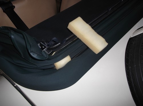 Photo de la protection qui nous plaçons capote repliée. Il s'agit d'une matière en mousse très souple qui épouse bien les formes. Capote bien repliée, cette protection n'est pas visible.