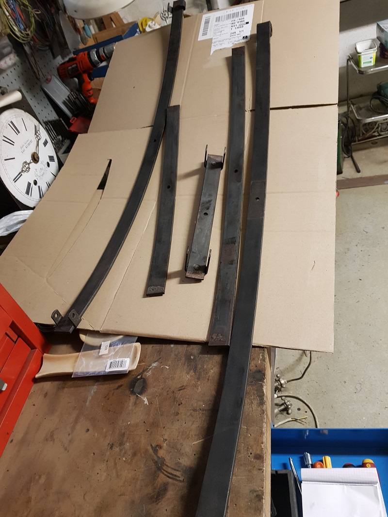 Résultat: une suspension qui a retrouvé son éfficacité , un niveau de caisse qui est remonté de 2cm (et qui n'a pas bougé depuis 3 ans) et un confort que les copains Morganistes m'envient. C'est du boulot mais ça vaut le coup! JMarc.Lames démontées.jpgaprés.jpgAvant nettoyage.jpg