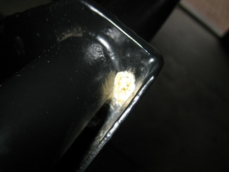 Comme on peut le voir sur les photos, en direct de la MMC, c'est livré pas peint dans les tubes, la peinture s'arrête à l'entrée des trous, sur une photo, on voit bien le fonds du tube sans la moindre goutte de peinture...même à l'extérieur, aux soudures, sur un simple coupe de chiffon, la peinture s'est envolée...